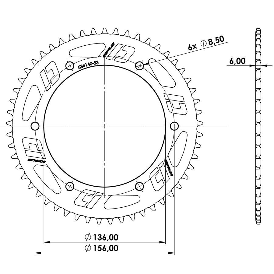 Nombre de dents: 53 dents